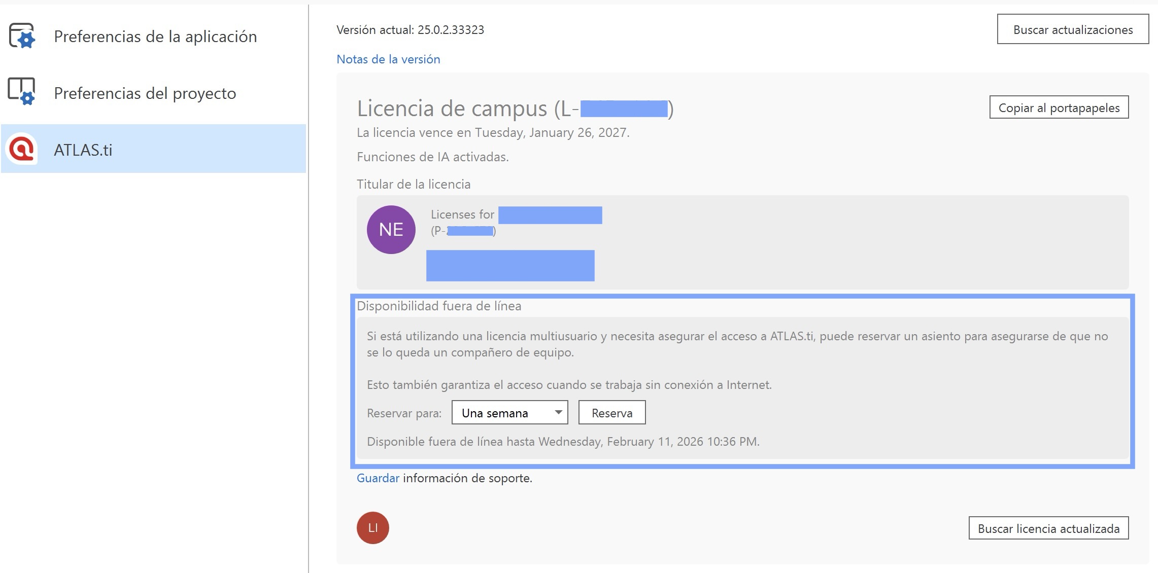 - Vaya a ATLAS.ti > Licencia.