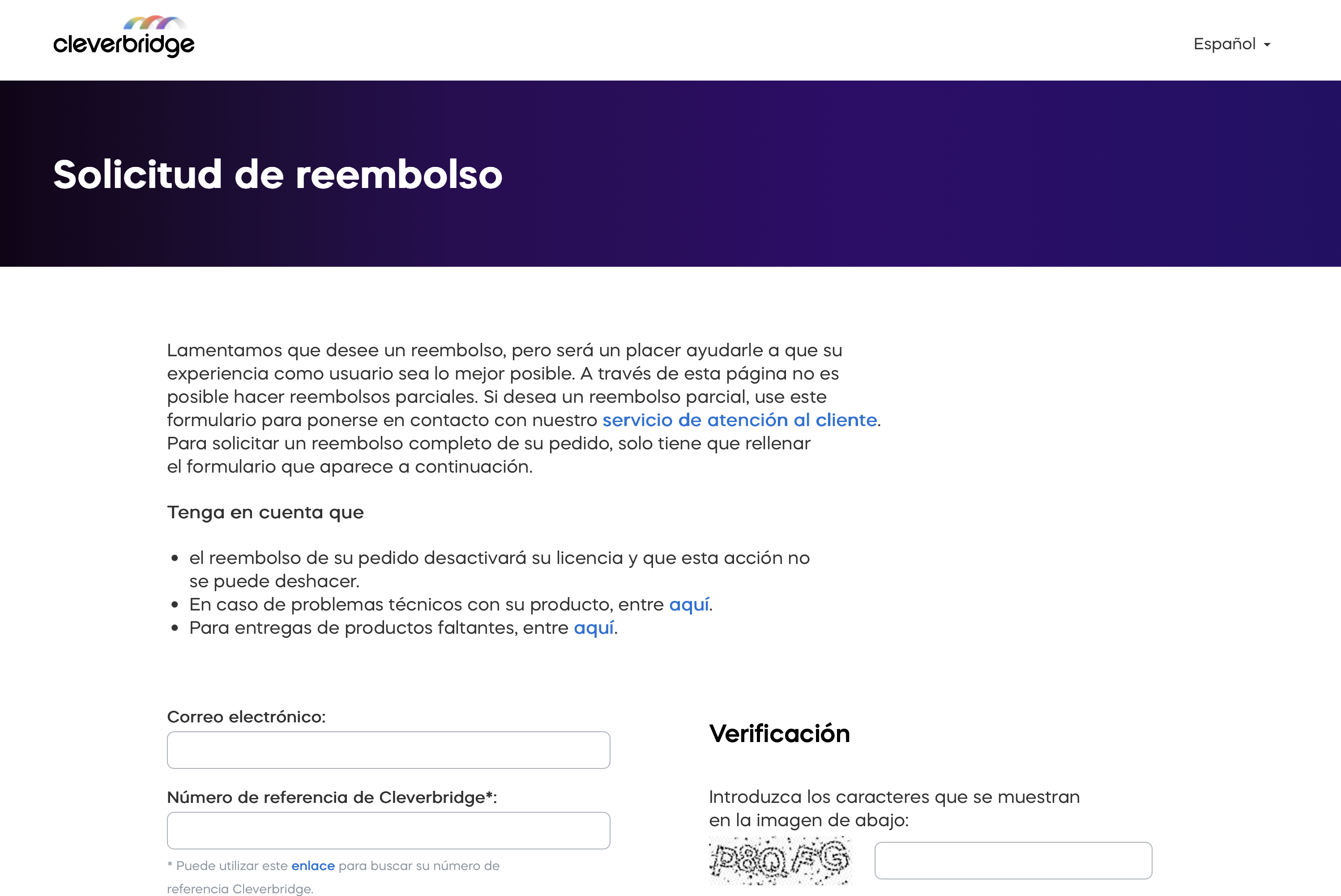 - Página de reembolsos: https://www.cleverbridge.com/refund